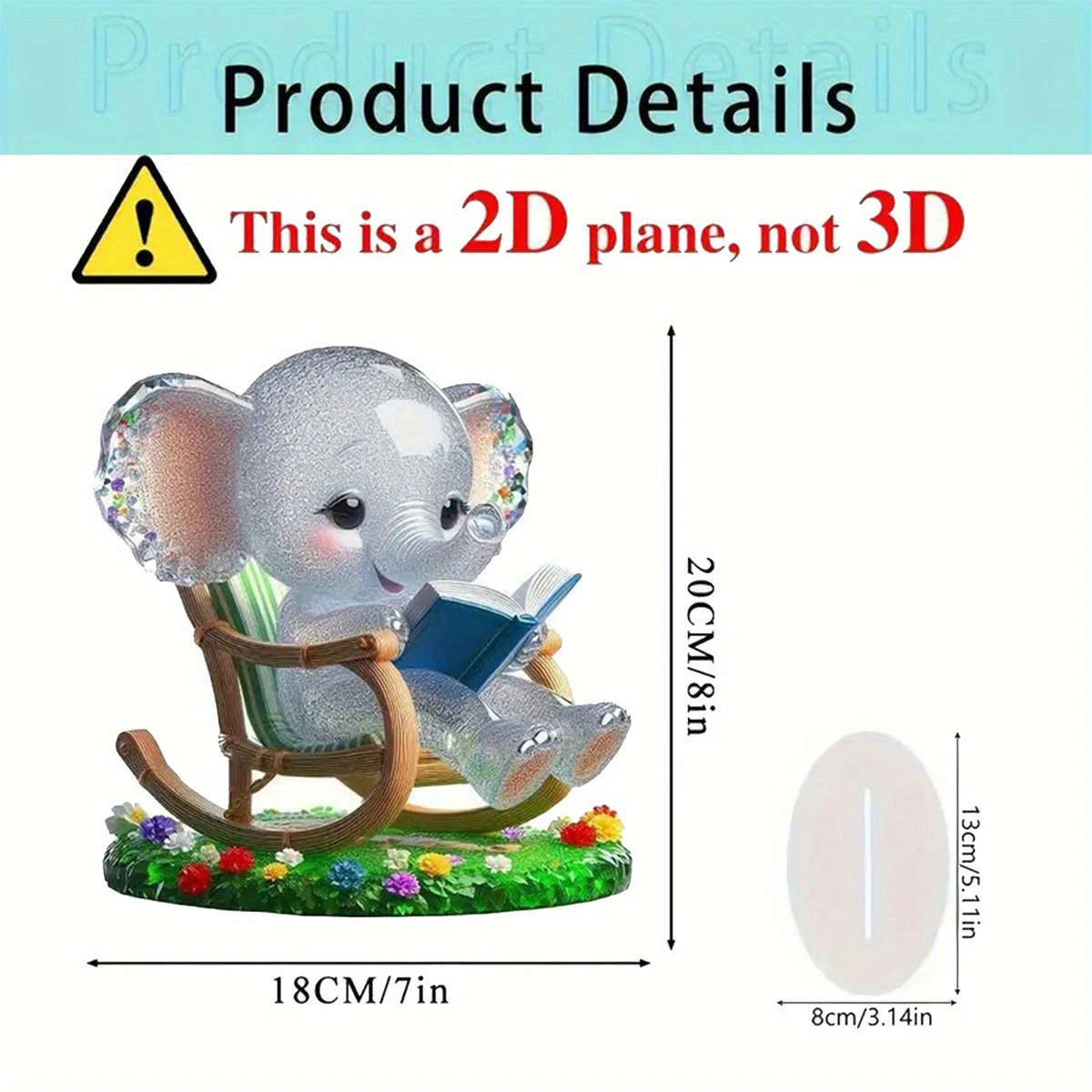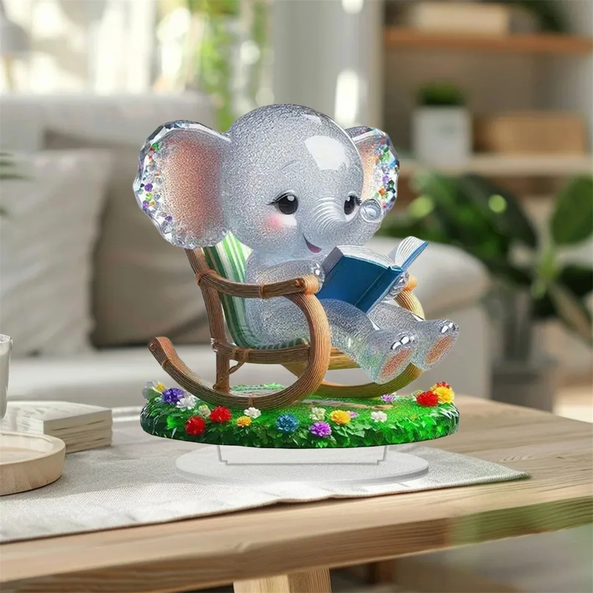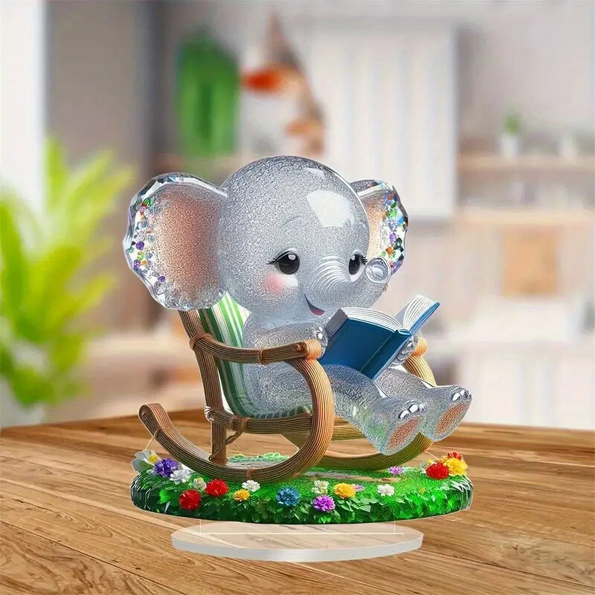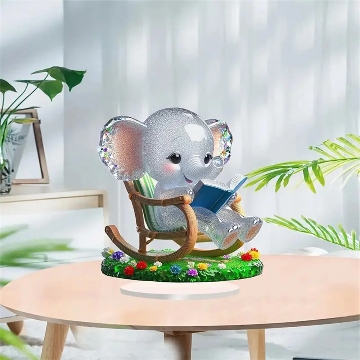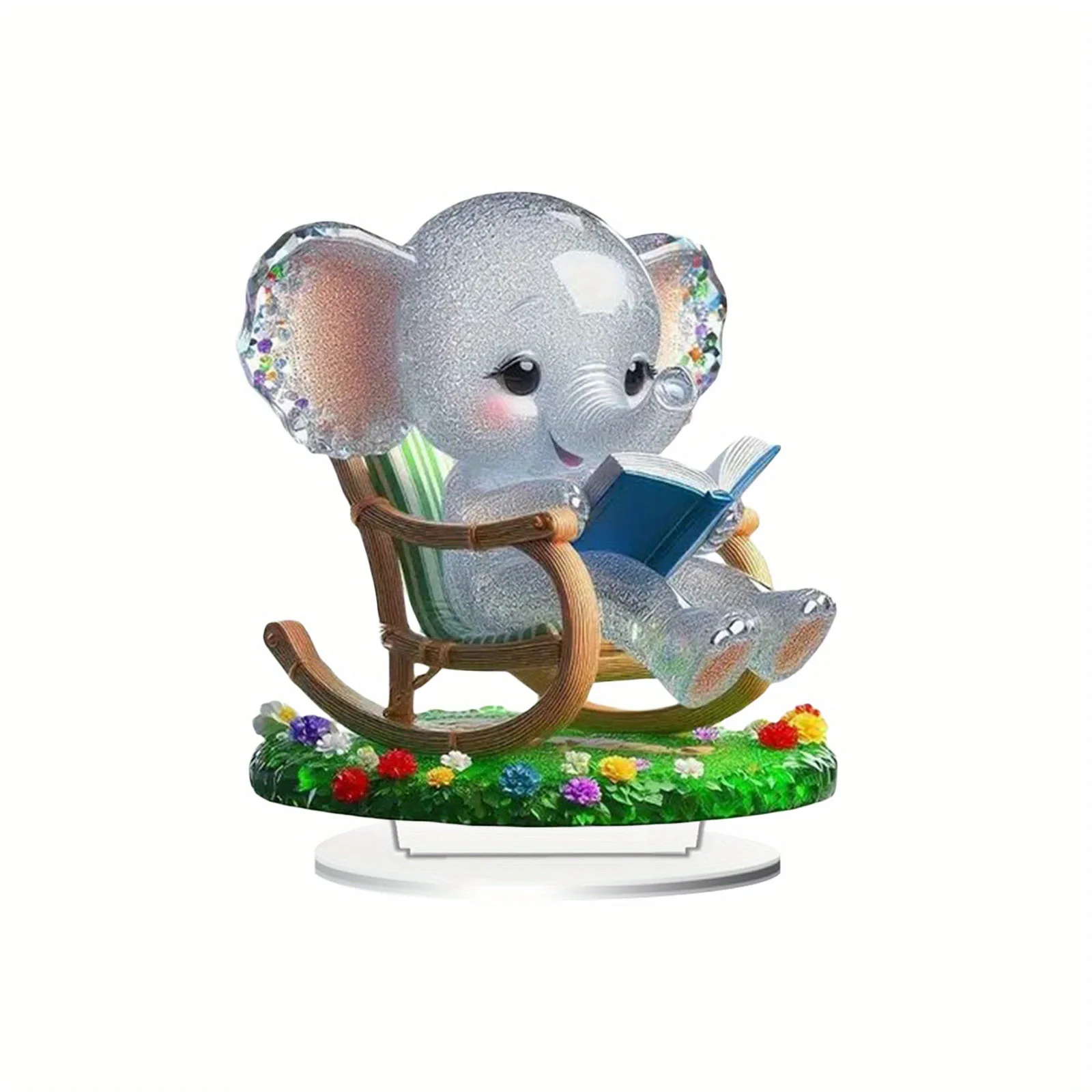 Read the classic desktop decoration of books and flowers on the cute gray rocking chair made of elephant acrylic ornaments,