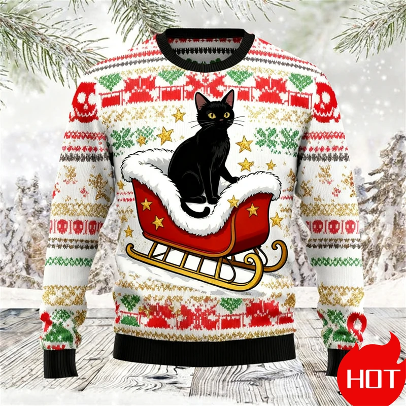 Black Cat Graphic Ugly Christmas Sweater Men Women Holiday Sweatshirt Pullover Xmas Santa 2026 Hot Sale Top Crewneck Long Sleeve