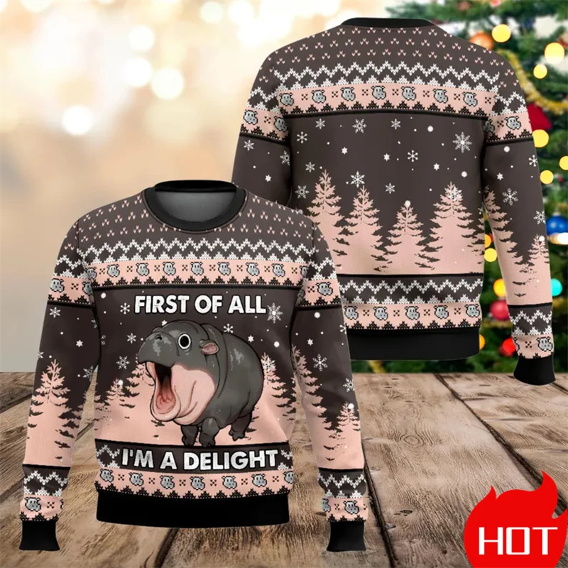 Cute Animal Hippo Raccoon Pig Ugly Christmas Sweater Casual Men Sweatshirt New Fashion Women Hoodie Pullover Tops Dropshipping