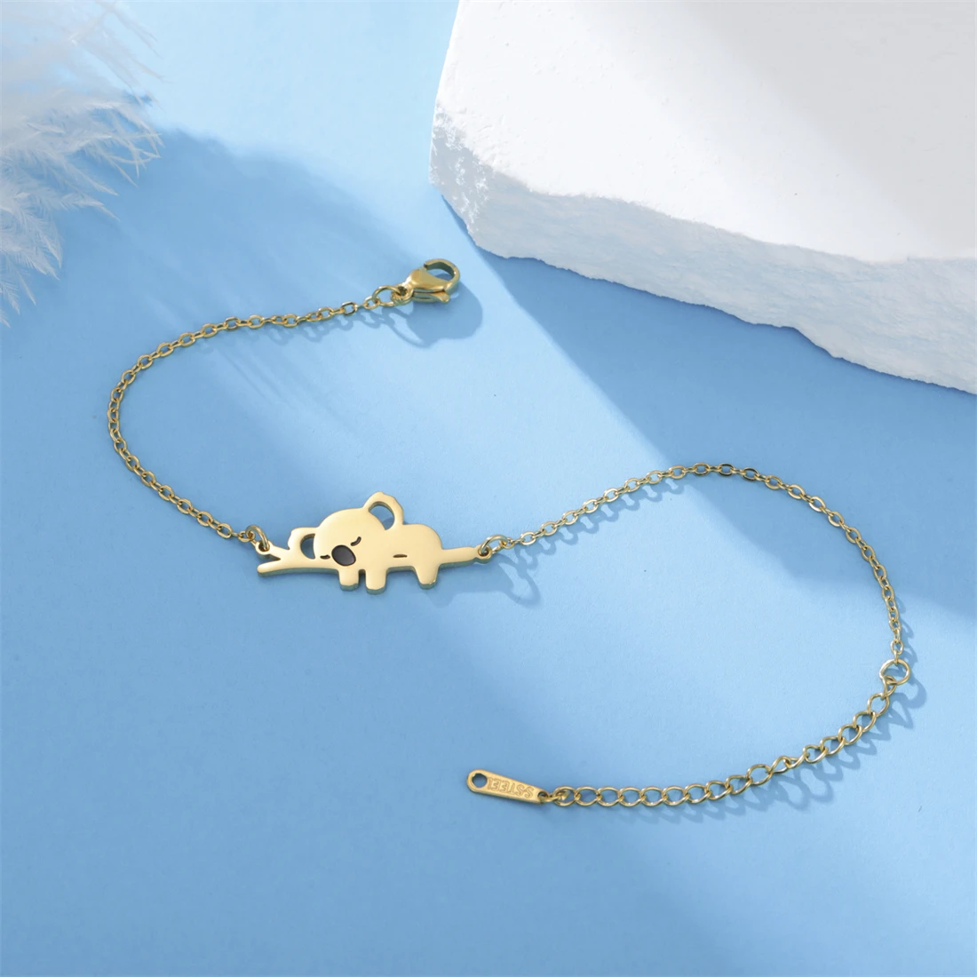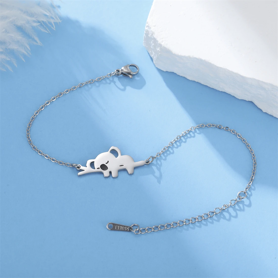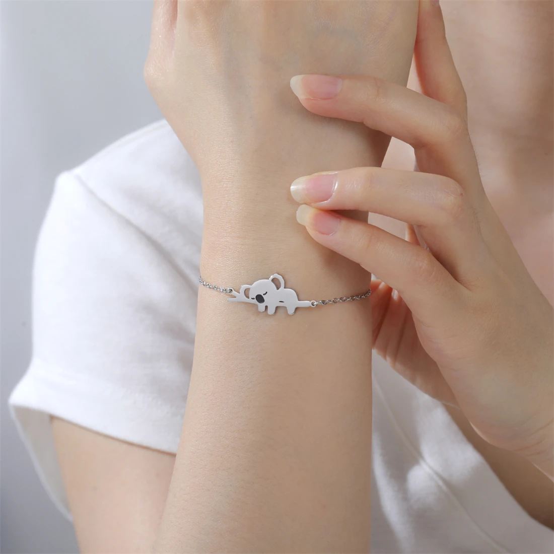 EUEAVAN Cute Koala Bracelet for Women Girl Fashion Animal Bracelets Stainless Steel Jewelry Party Gift Wholesale Waterproof