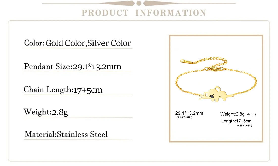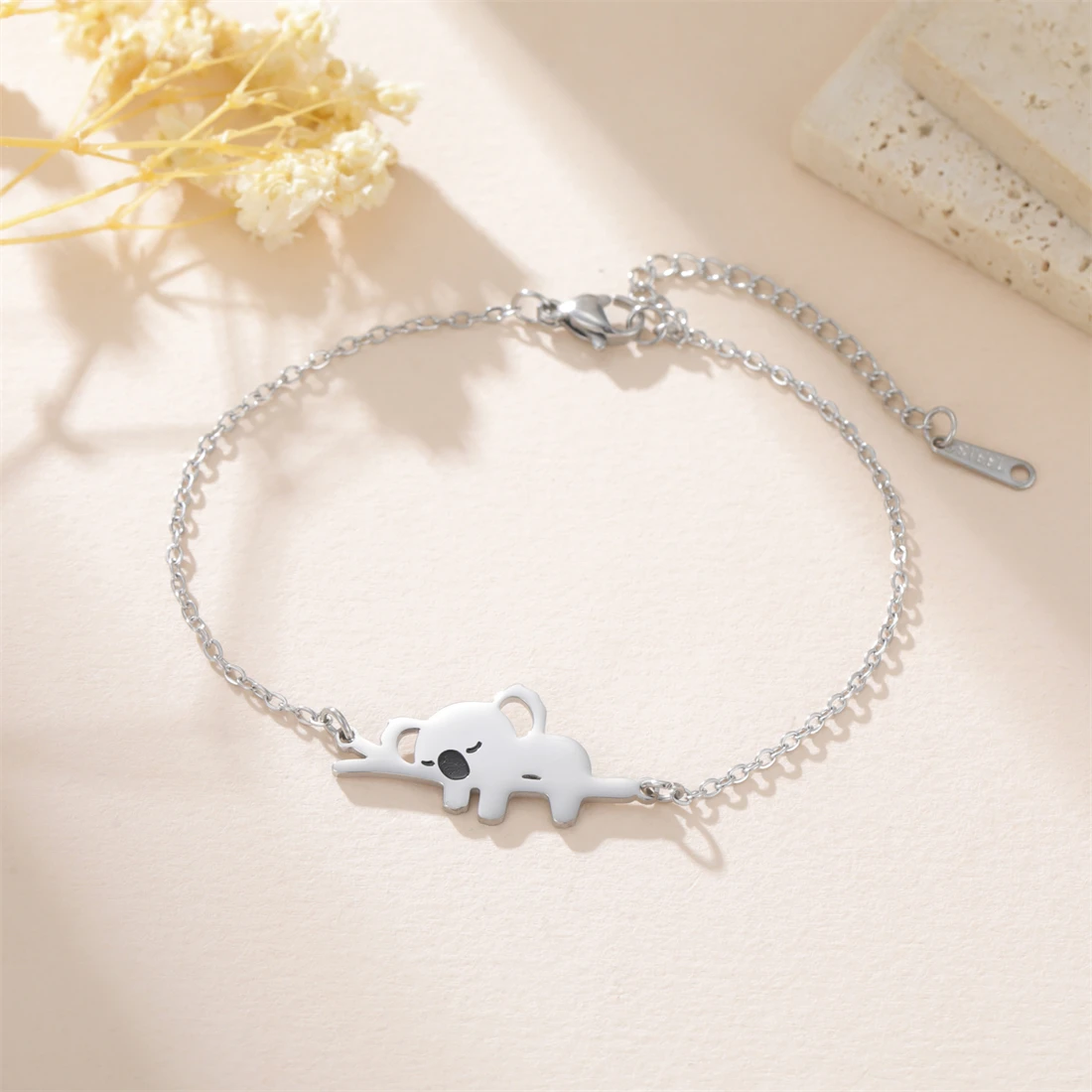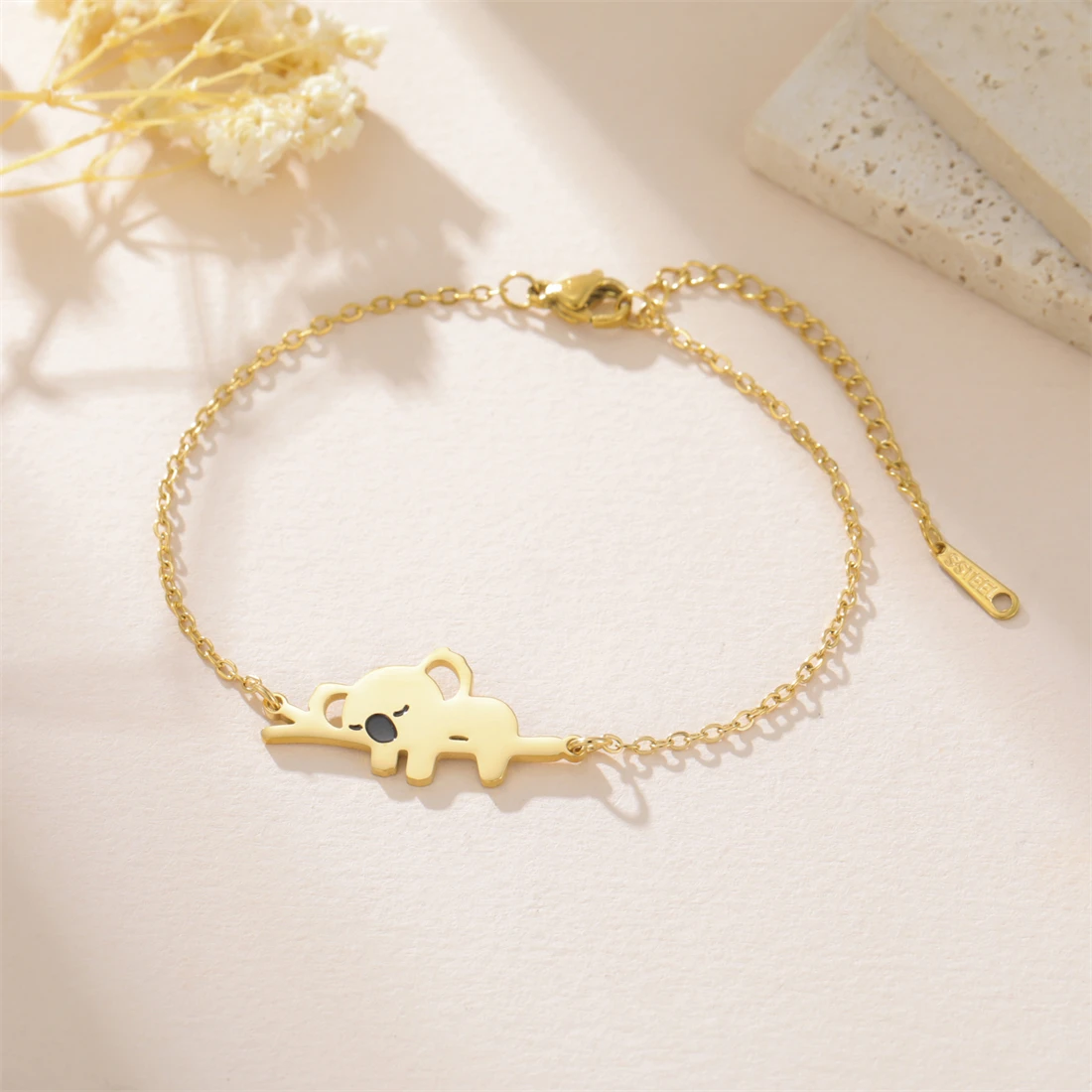 EUEAVAN Cute Koala Bracelet for Women Girl Fashion Animal Bracelets Stainless Steel Jewelry Party Gift Wholesale Waterproof