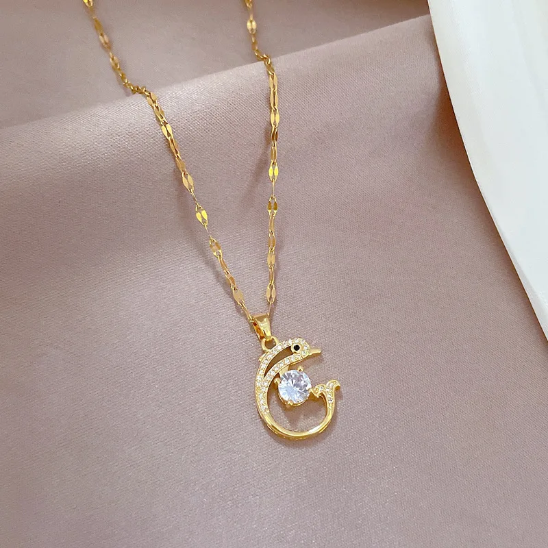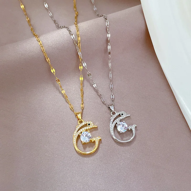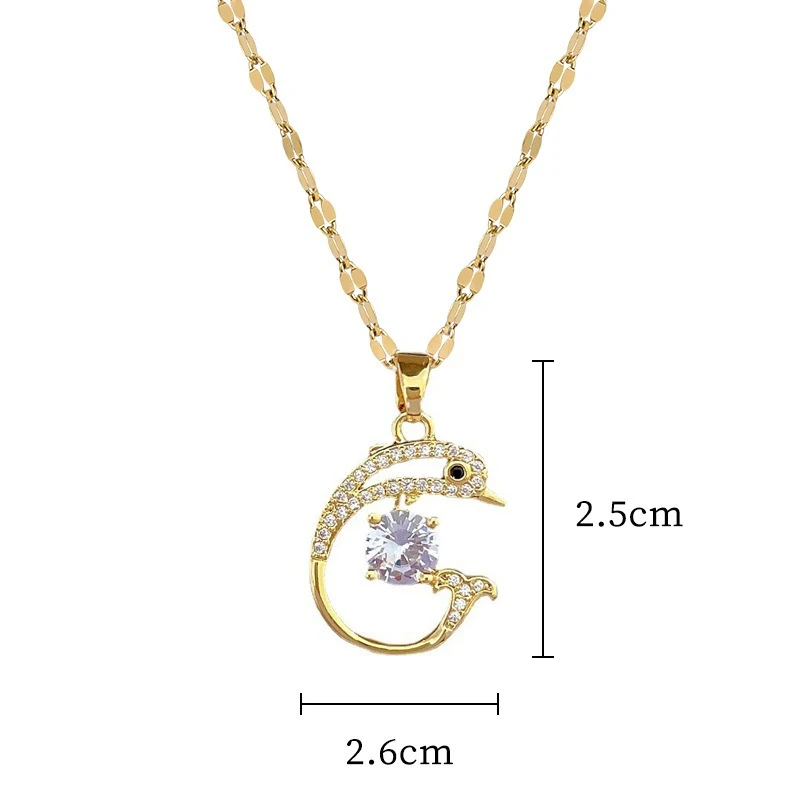 Stainless Steel Chain Dolphin with Zircon Pendant Necklaces for Women Cute Jewelry Accessories Gifts