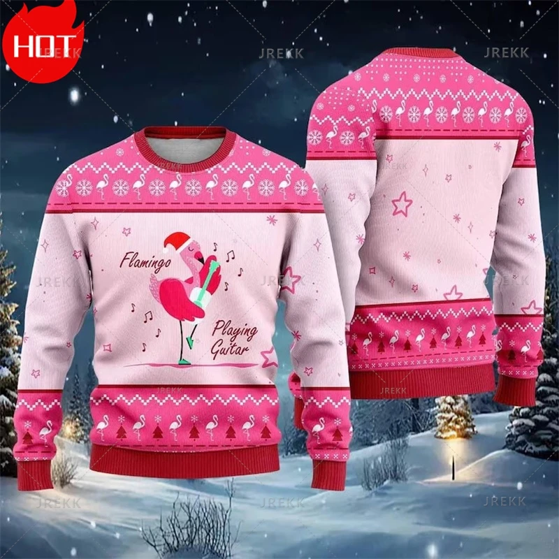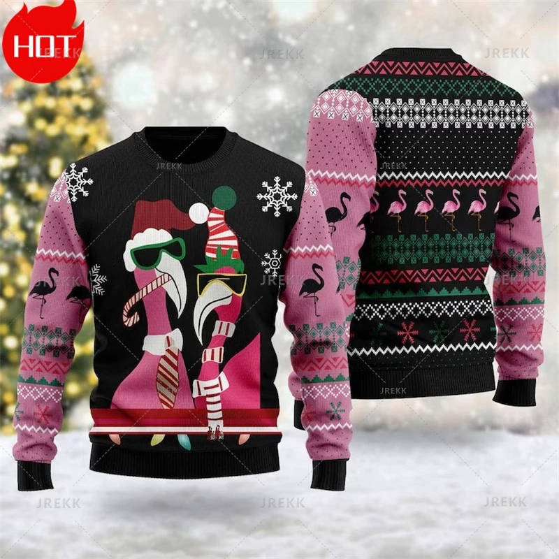 Happy Christmas 3D Printing Sweatshirts Xmas Flamingos Graphic Christmas Jumpers Men Funny Streetwear Ugly Christmas Sweatshirts