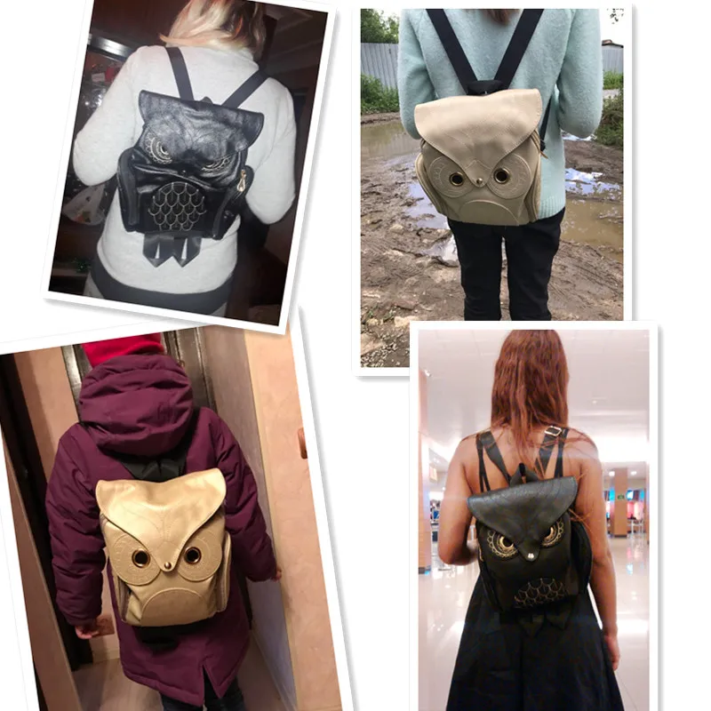 Women Backpack Stylish Cool Black PU Leather Owl Backpack Female Hot Sale Women Bag bagpack for girls