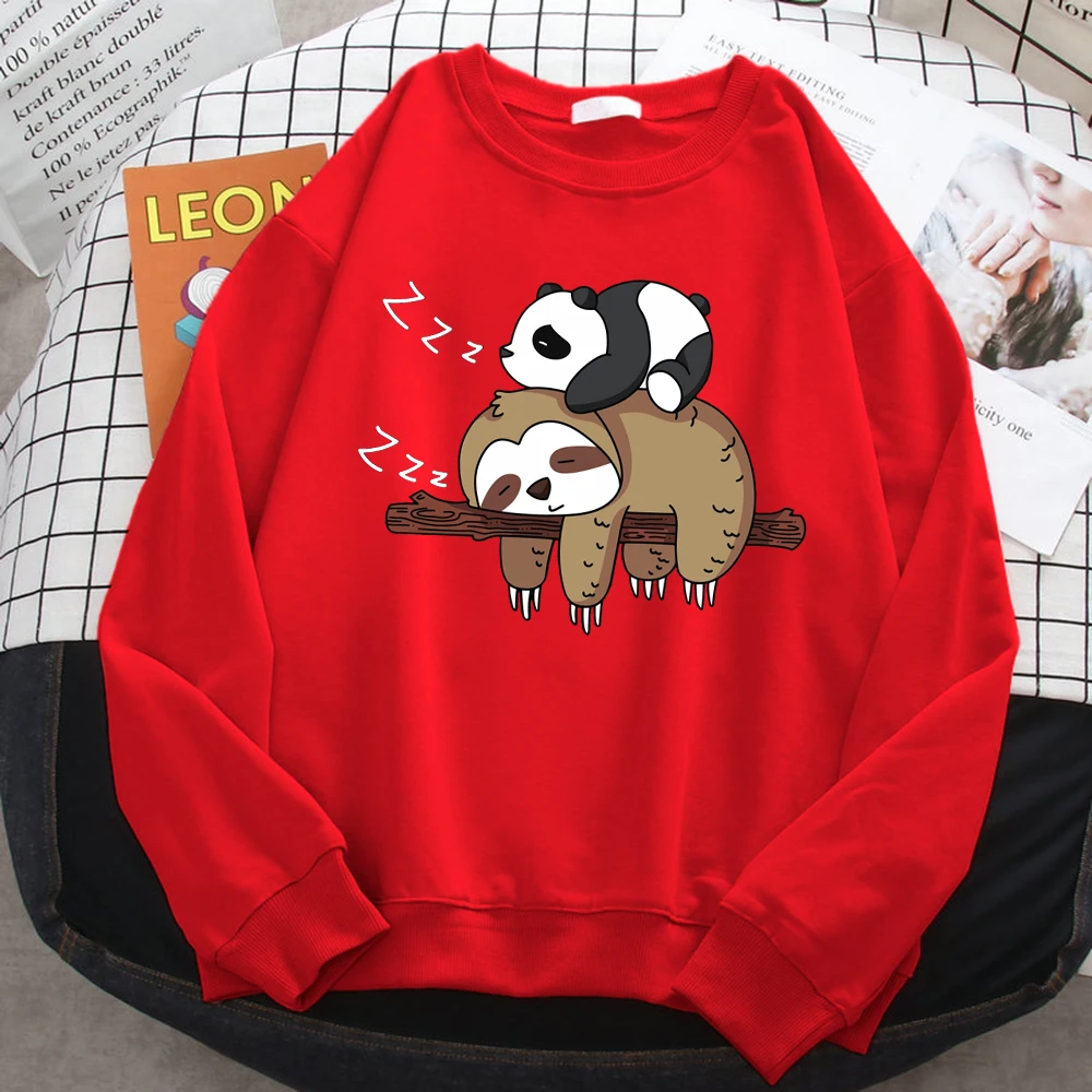 Simple Trend Woman Sweatshirts Panda Lying On A Sloth Printing Hoodies Comfortable All-Math Pullover Crewneck Loose Female Tops