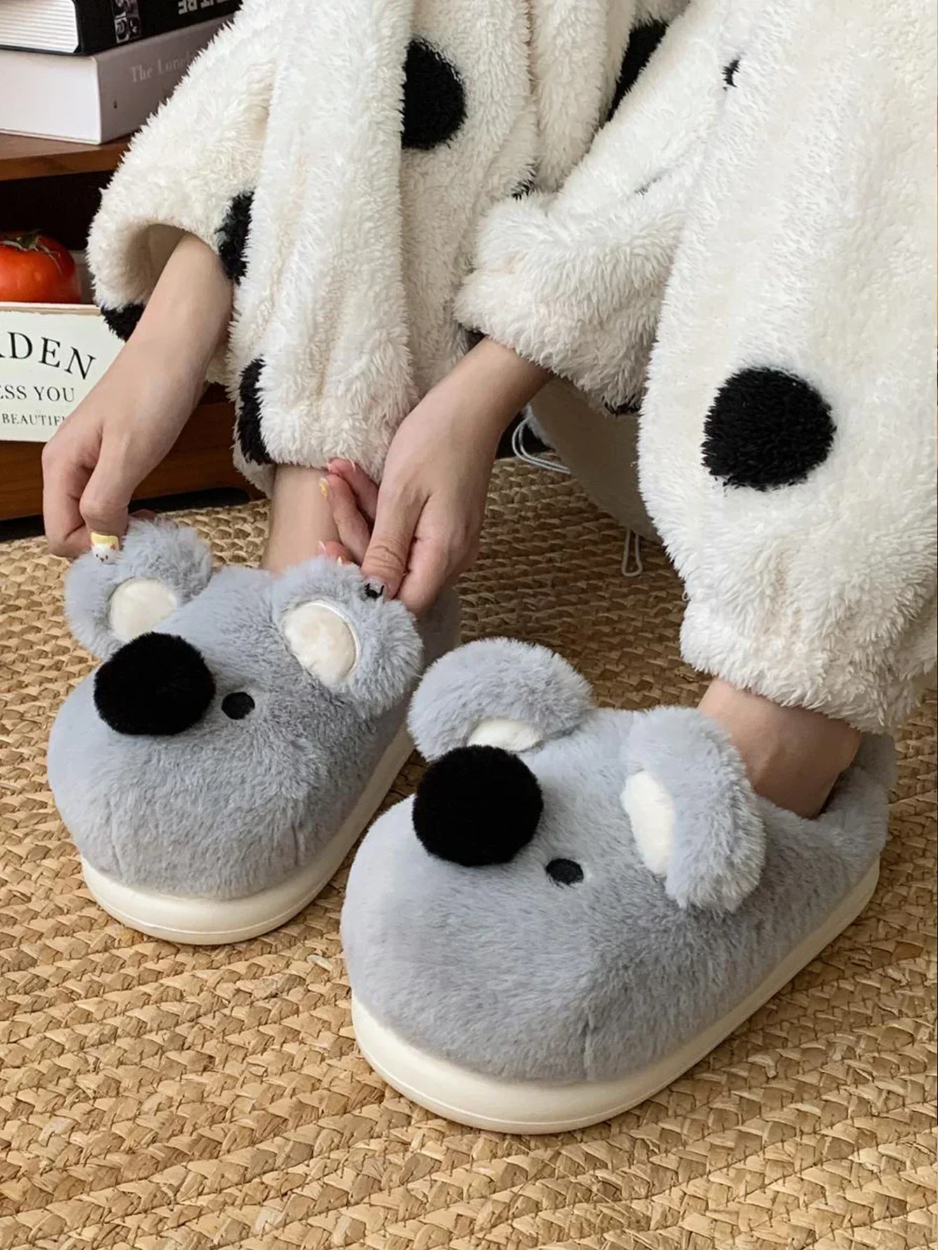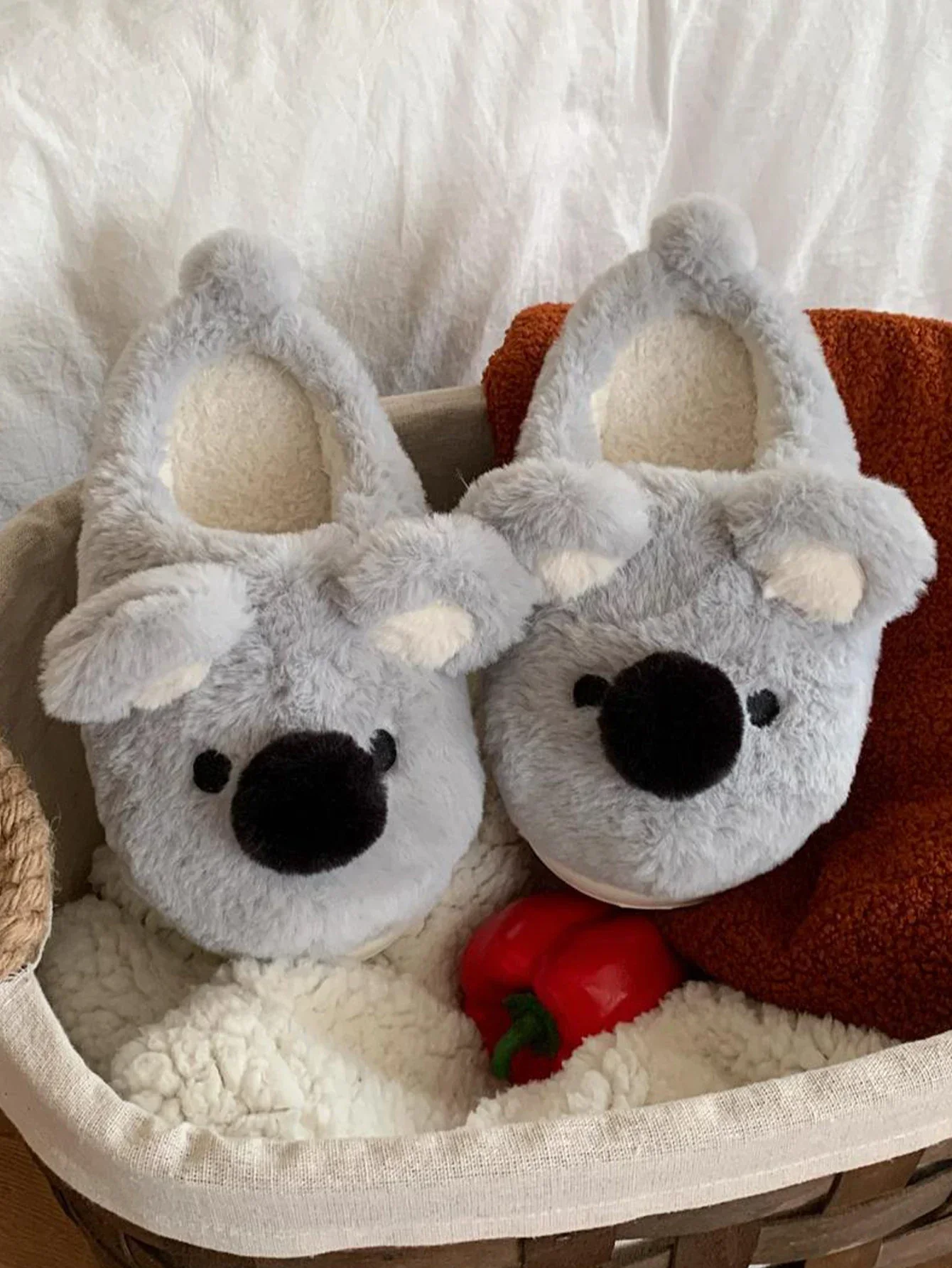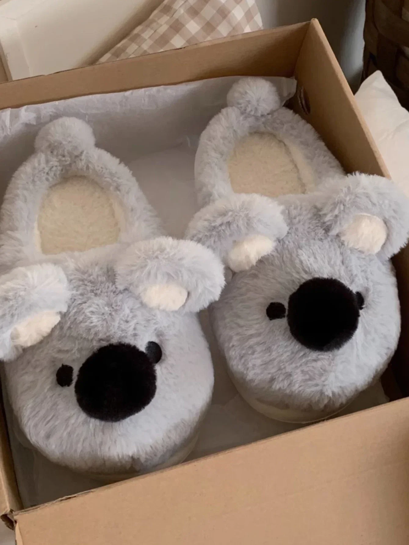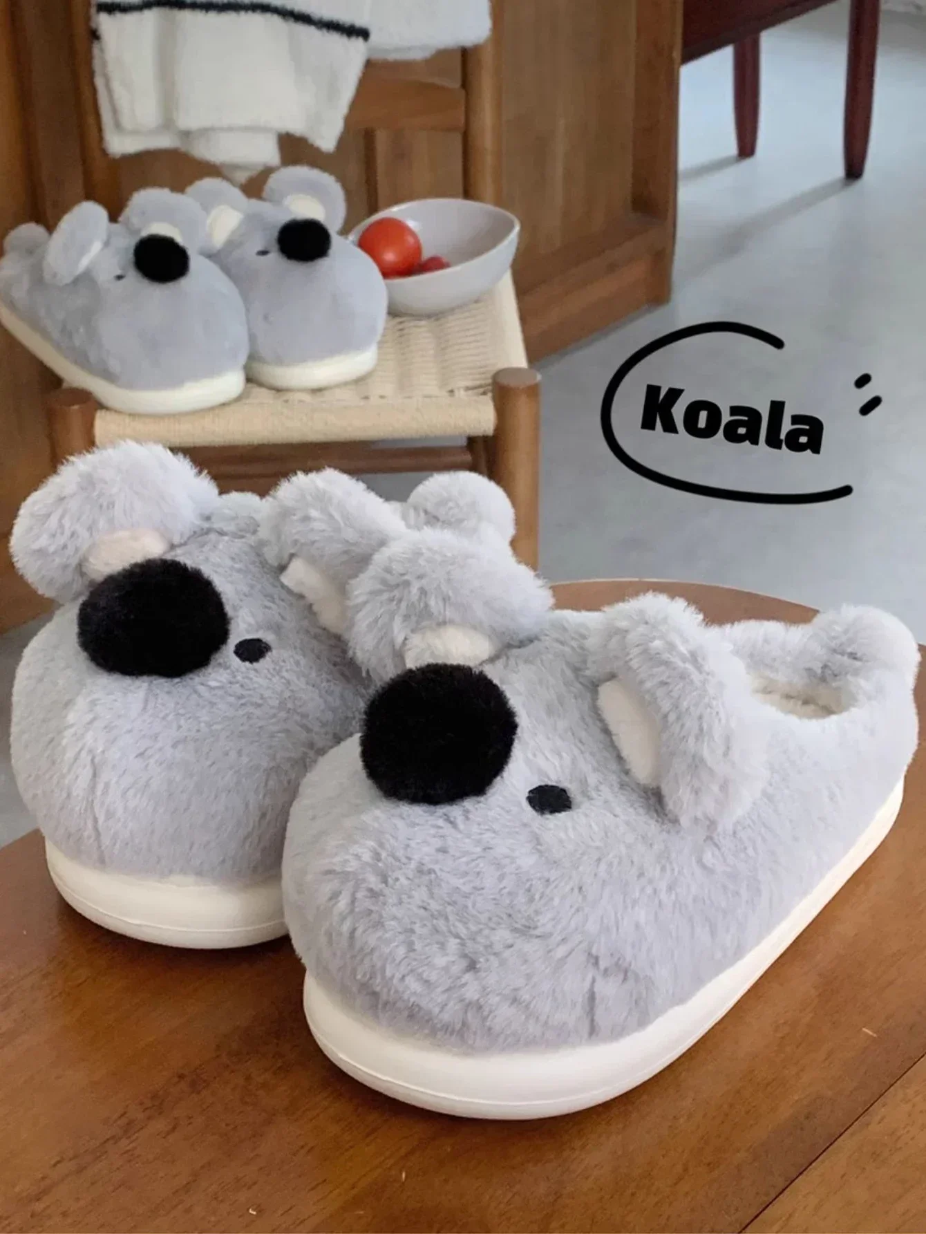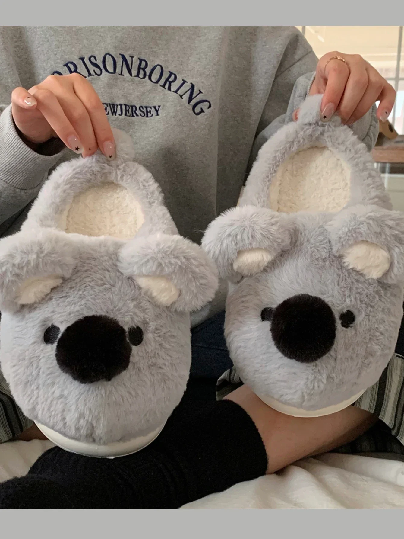 Women Winter new three-dimensional koala design Slippers Casual Soft Heel Platform Fur Warm Indoor Comfortable Man Home Slippers